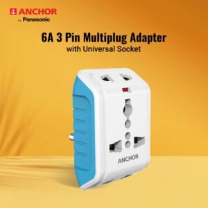 Anchor by Panasonic 22843 6A 3 Pin Multiplug Adaptor with Surge Protection (White & Blue)