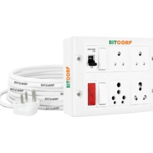 Bitcorp Extension Board 4 Socket 2 Switch 16A, 3500W Heavy Duty Power Strip with Surge Protector 25 Meter Electric Power Extension Cord for Home Gadgets, Office, Pc, Cooler, Fridge (White) 220 Volts