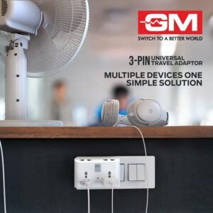 GM 3 Pin 6 AMP Universal Multiplug Travel Adapter with 4 Charging Point | Useful for Home Applications, Mobiles, Computers, Laptops | Adapter with Inbuilt Surge Protector & Power Indicator | GM 3019
