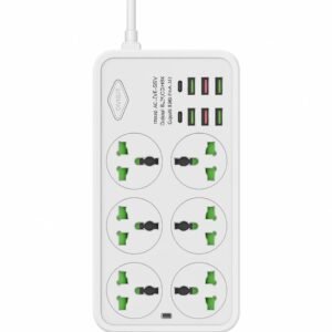 Universal Extension Board with USB | Multi Plug Socket Extension Cord | 6 in 1 Spike Guard with Type-C Fast Charging | Heavy Duty Extension Box with Individual Switch, Surge Protector (Off-White)