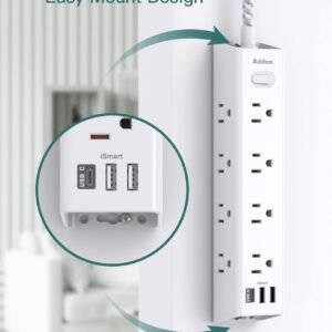 Surge Protector Power Strip – 10 FT Extension Cord, Power Strip with 12 Widely AC Outlet 3 USB, Flat Plug, Wall Mount Overload Protection, 1050J, (5ft)