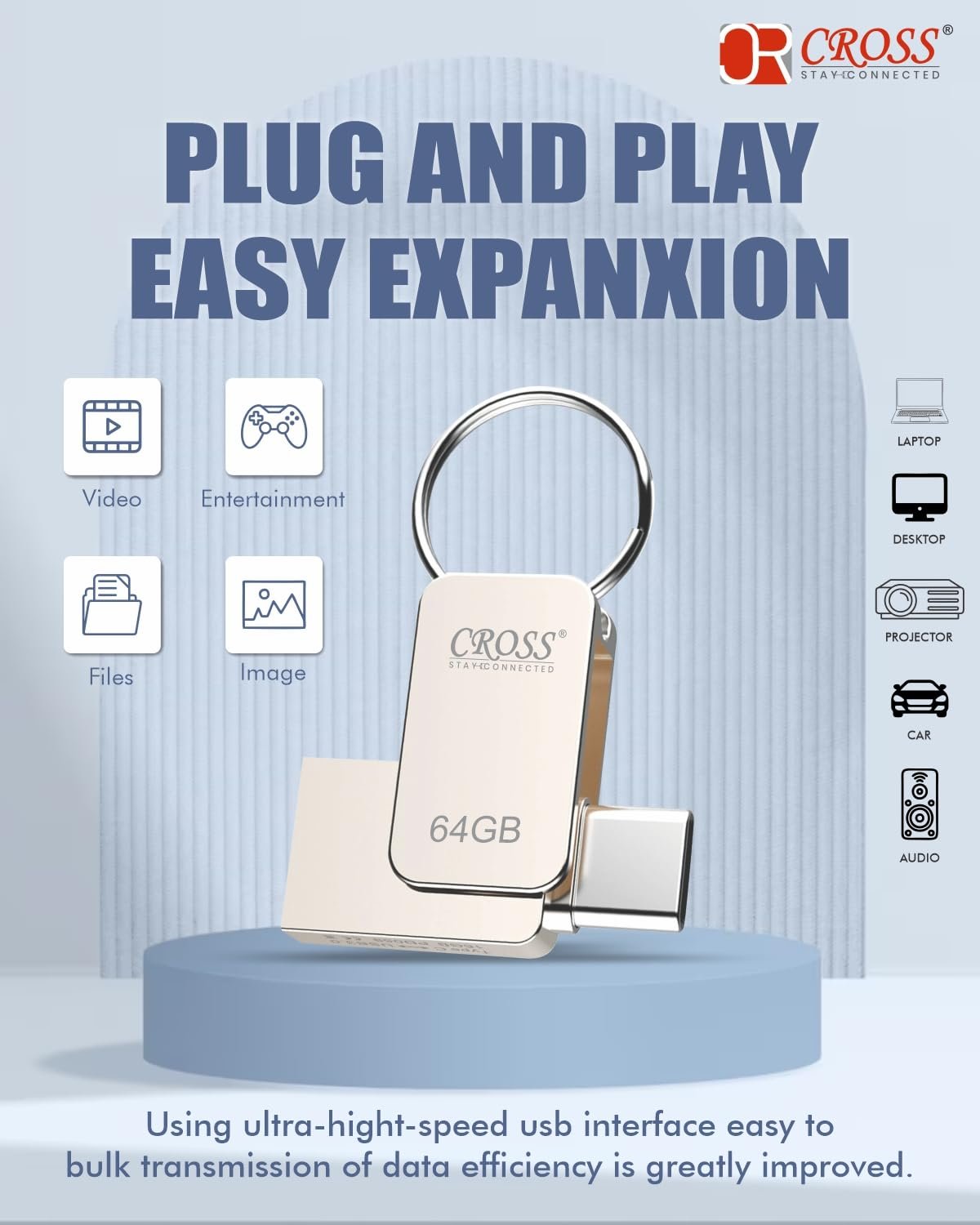 - PENDRIVE WITH ANTILOST KEYCHAIN HOOK AND PREMIUM METAL FINISH
