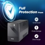 • Extremely Silent operation with protection of Discharge, Overcharge & Overload .| Audible Alarms : Backup Mode-Every 10 Sec, Overload- Every 0.5 Sec, Low Battery- Every 1 Sec, Fault-Continuous. |Led Indicator : AC Mode-Green Lighting, Battery Mode- Green Flashing | BIS Certified UPS |