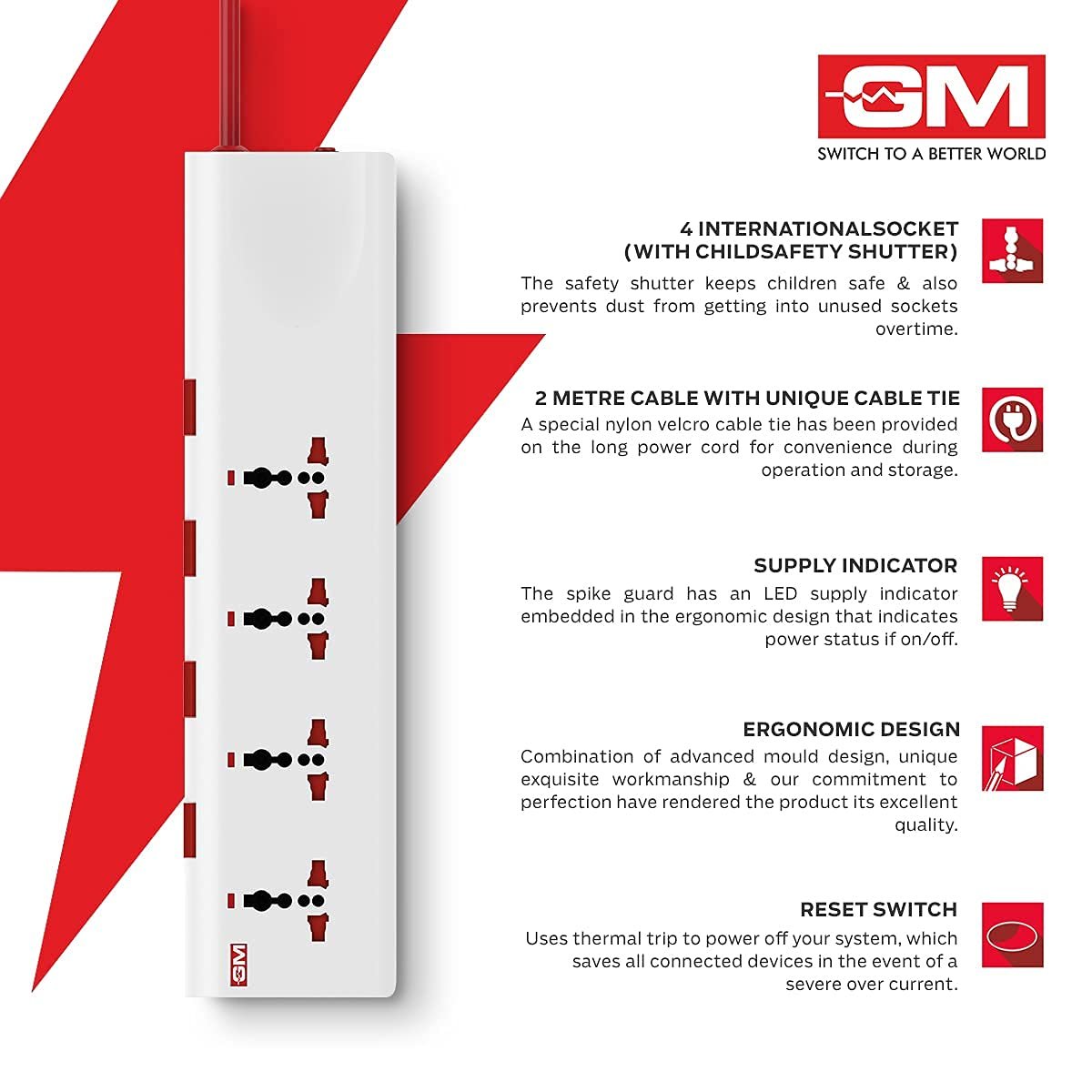 - π Surge & Spike Protection with 3 MOVs β Keeps devices safe from voltage fluctuations and extends appliance life.