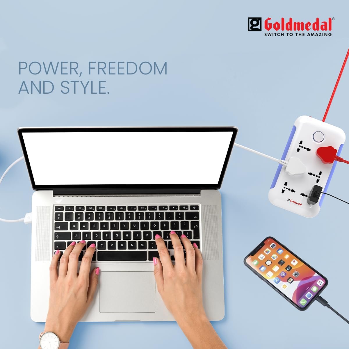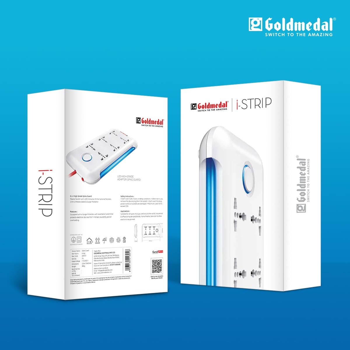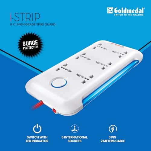 Details: Goldmedal i-Strip LED spike guard is the one-stop solution for all your charging needs! This unique device is ergonomically designed with high-quality plastic and phosphor bronze contacts that ensure minimal temperature rise. This uber-cool spike guard comes with 6 universal plug-friendly sockets, an indicator with surge protection, a reset switch, and a heavy-duty cord. Charging multiple devices just got easy and stylish!