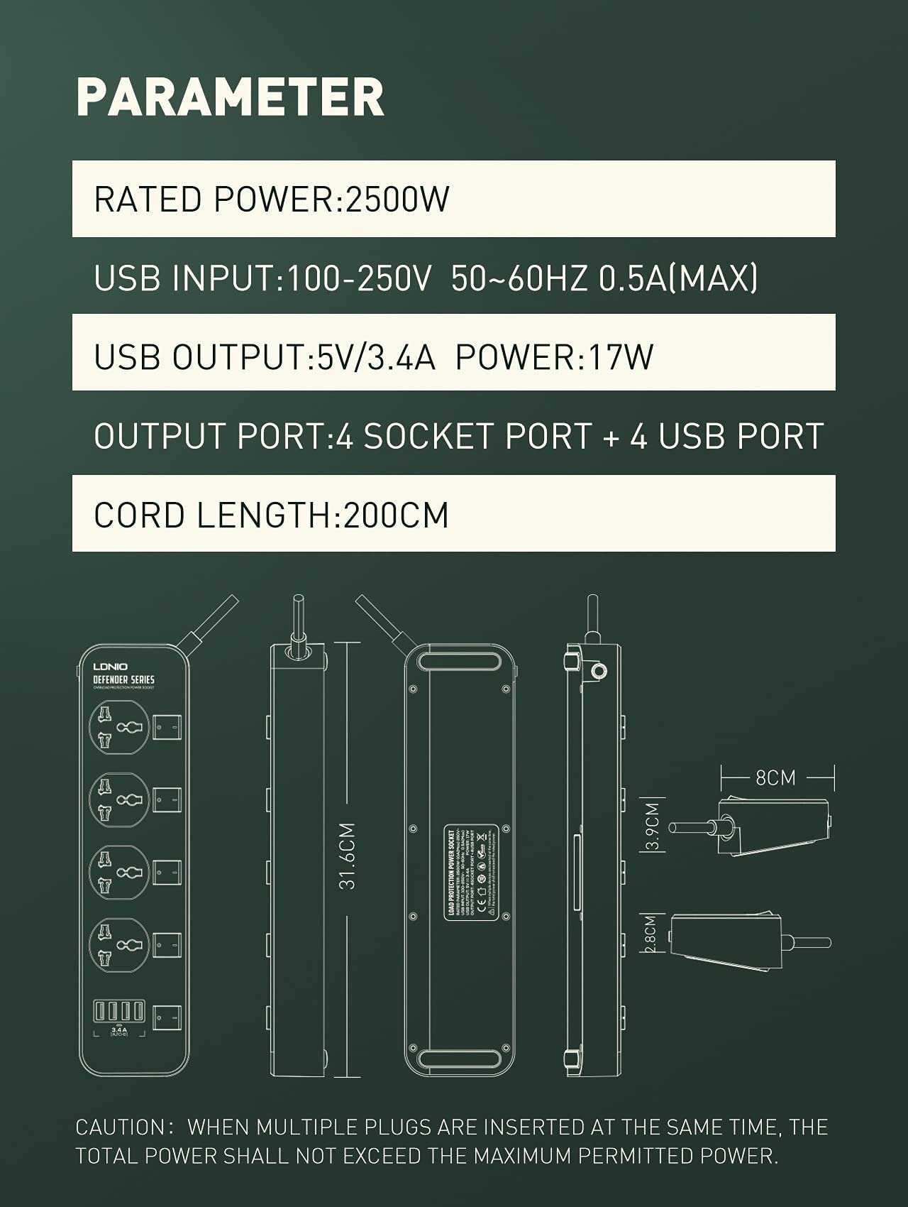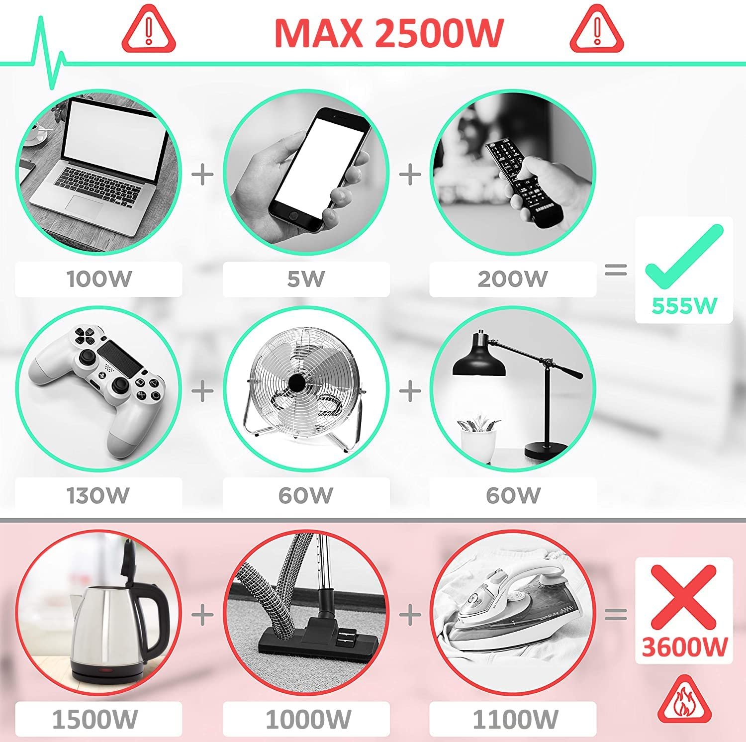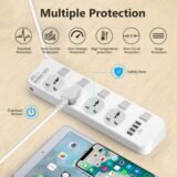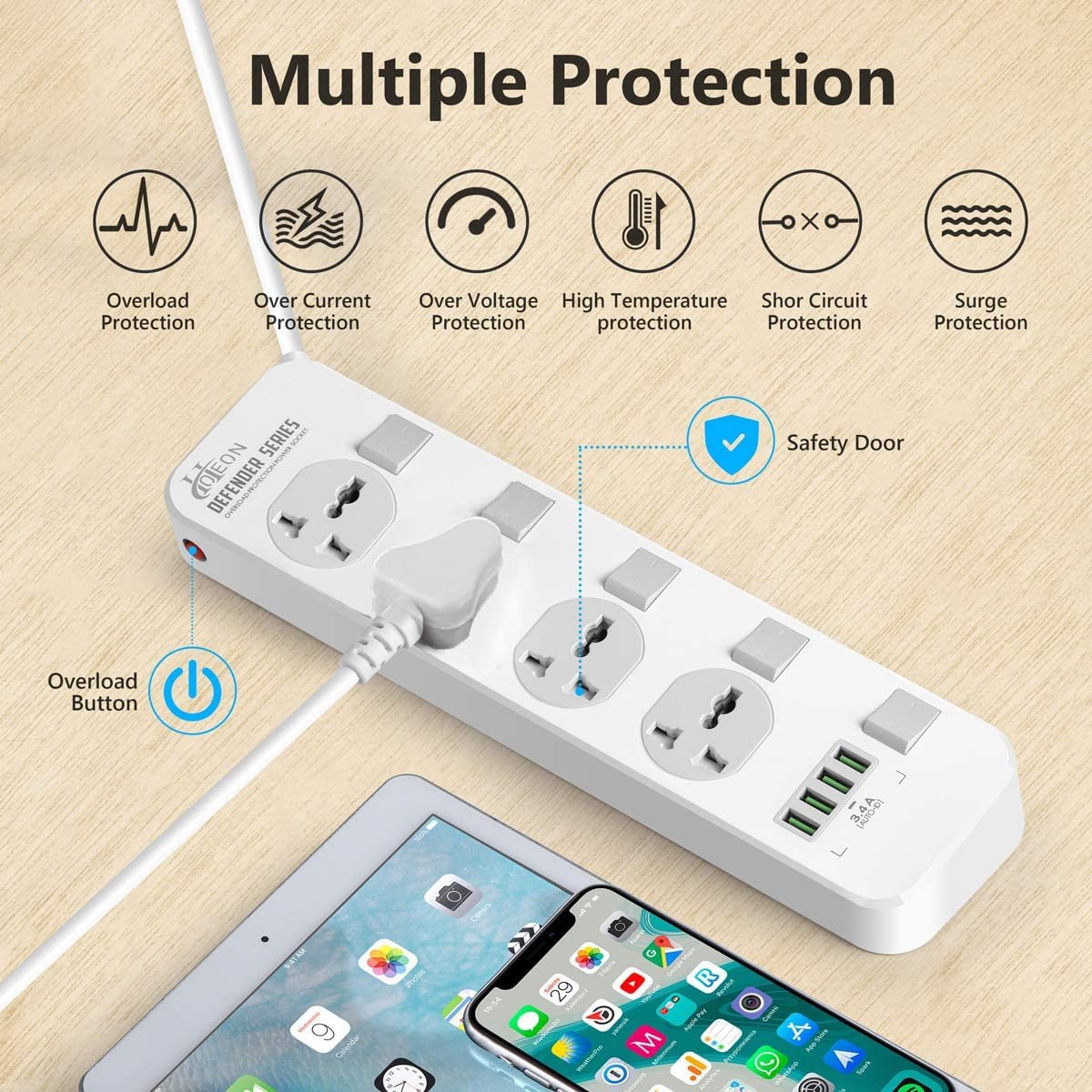 - 😊 【SMART USB Output charging & Universal Sockets】USB ports output (5V/3.4 Max/17W) have Built-in smart charging technology, will auto-detect your devices and seek to maximize the fastest possible charge speed, quick charge speed up to 3.4A(4 usb ports total 3.4A). Sockets suit for IN/UK/EU/US/AU/IT/SA/ plugs, apply to almost all devices with 2-pin and 3 Pins, widely used in homes, offices, shops, school or other places.
