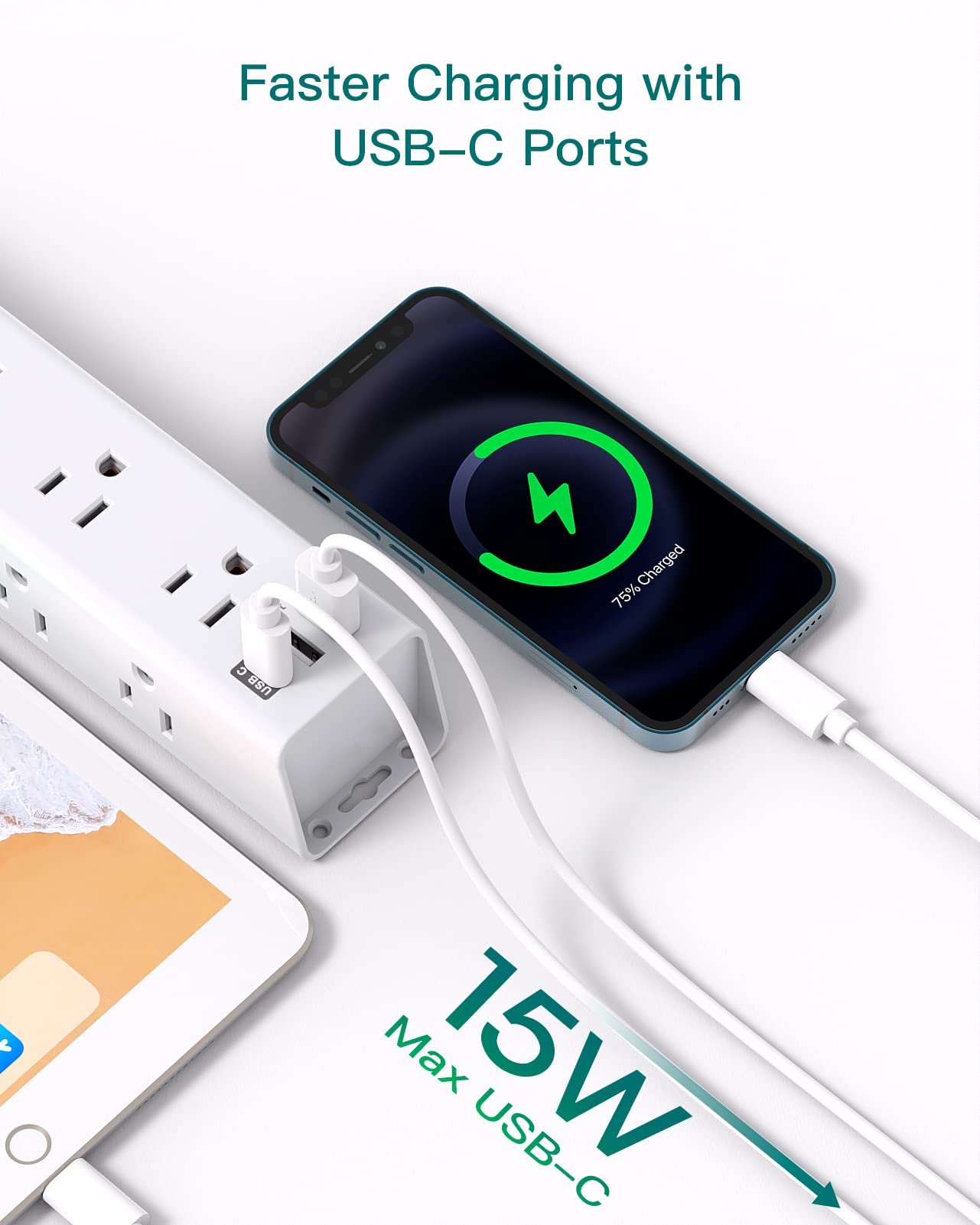 - Addtam Surge Protector Power Strip 10 ft with 4 USB Ports 2 USB-C 6 AC Outlets