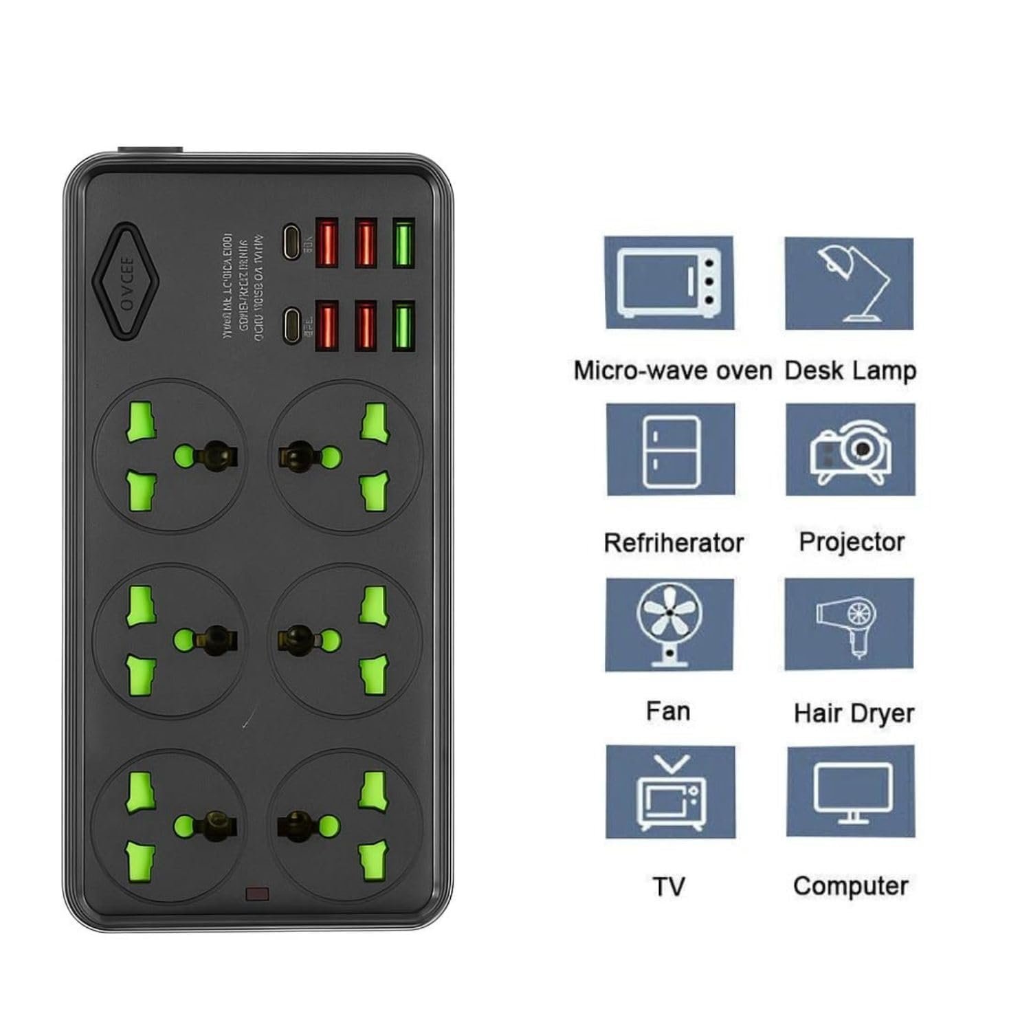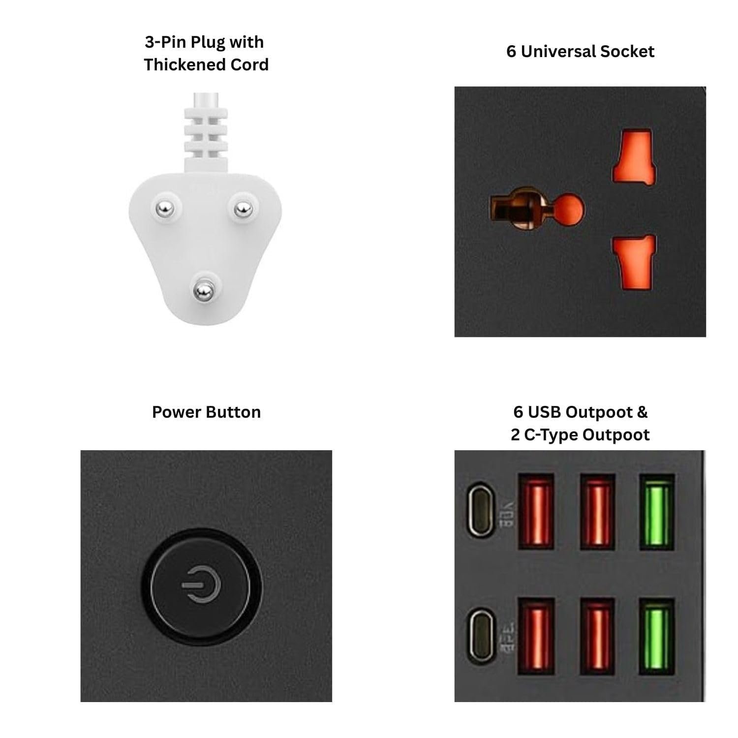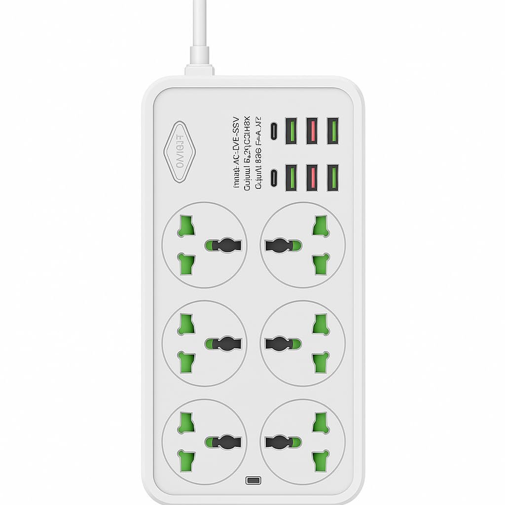 - 🔌 Universal Multi-Plug Compatibility: Features 6 universal sockets supporting all major plug types for home, office, computer, TV, kitchen appliances and more.